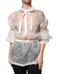 Gorgeous brand new with tags, 100% Authentic Dolce & Gabbana white blouse is complemented by an ascot collar. The fitted model with long sleeves is made of fine silk jersey.