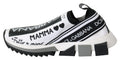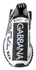Gorgeous brand new, 100% Authentic Dolce & Gabbana Black and white ‘Sorrento’ sock sneakers. Decorated with a logo print in white and black. Fabric pull strap sewn-in at the back. Black decorative rubber sole.