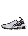 Gorgeous brand new, 100% Authentic Dolce & Gabbana Black and white ‘Sorrento’ sock sneakers. Decorated with a logo print in white and black. Fabric pull strap sewn-in at the back. Black decorative rubber sole.