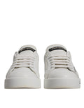 Gorgeous preowned, 100% Authentic Dolce & Gabbana Portofino sneakers come with the brand name lettered on them. Made from leather in a blue and white shade, they feature lace-up vamps, round toes, and comfortable rubber soles.