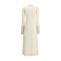 The Morena Malfilé Long Dress by Sa Su Phi is crafted from a luxurious blend of cashmere and cotton, combining comfort with sophistication. Featuring a fitted body and a softly flared skirt, it enhances the silhouette with natural elegance. The clean neckline and long sleeves provide both warmth and refinement, making it a perfect choice for transitional days, quiet evenings, or serene weekends.