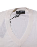 White Cashmere Logo V-neck Pullover Sweater