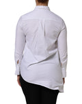 White Cotton Collared Long Sleeves Ruffle Top Shirt