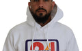 White Cotton Hooded Printed Men Pullover Sweater