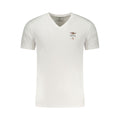 Elevate your style with the epitome of sleek and trendy fashion, sporting Aeronautica Militare’s bold tricolor arrow T-shirt. Featuring a sharp V-neck and short sleeves to keep your look casual yet sophisticated, this top is perfected with a statement print and the iconic logo. Crafted from a high-quality blend of cotton and elastane, it promises both comfort and durability. Whether you’re heading outdoors or keeping it cool in the city, this white tee is a must-have for the modern man’s wardrobe.