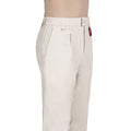 Tramarossa Alberto chino trousers in slightly stretchy white cotton, button and zip fastening, two side welt pockets and two back pockets, suede patch on the back.