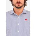 La Martina blue and white striped cotton shirt with embroidery on the chest.