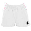 Comme Des Fuckdown cotton shorts with front logo print and fuchsia side bands, two side pockets