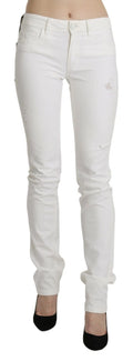 White Cotton Slim Fit Mid Waist Skinny Trouser Jeans