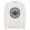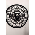 Balmain white cotton crewneck sweatshirt with contrasting black velvet logo print, ribbed collar, cuffs and hem