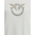 Pinko’s embroidered logo Sweatshirt combines comfort and style with precious details. Featuring a ribbed crew neck, cuffs and hem, the logo on the front is embellished with pearls and rhinestones, giving the garment a touch of elegance and shine.