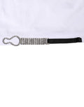White Crystal Embellished Collared Shirt Top