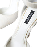 White Floral Jacquard Mary Janes Heels Pumps Shoes