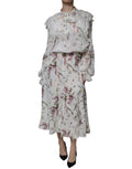 White Floral Ruffles Lace Long Sleeves Maxi Dress