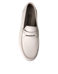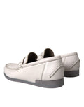 White Gray Leather Slip Mocassin Shoes Loafer