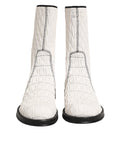 boots bring sleek sophistication to any look. Crafted from smooth white leather, they feature a structured mid-calf silhouette for a bold yet versatile statement. Designed with a sturdy sole and refined detailing, they pair effortlessly with dresses, skirts, or trousers for a modern, elevated style.