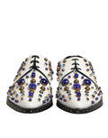 Gorgeous preowned, 100% Authentic Dolce & Gabbana White Leather Shoes, featuring stunning multicolor crystal embellishments that elevate the classic dress shoe to a statement piece. Expertly crafted from premium white leather, these shoes combine refined elegance with a bold, eye-catching design. Perfect for formal events, evening wear, or whenever you want to make a lasting impression.