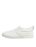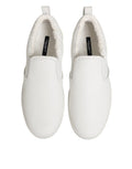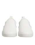 slip-on sneakers, crafted from smooth white leather for a polished yet casual look. Featuring a low-top silhouette, elastic side panels, and a comfortable rubber sole, they offer effortless style and all-day wearability.
