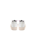 P448 White leather Thea sneaker, front lacing with fuchsia-colored lurex laces, ivory suede toe, on the tongue perforated logo, as well as on the side and back of the shoe. Rubber outsole, 3 cm. Composition: 100% Leather-Sku inside:24FEB03
