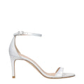 The product with MPN NUDISTIISANDAL75LSPSJ991BIANCO and code F84404 leather in white is a sandals designed by Stuart Weitzman. It has features like metallic effect.