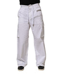 men’s trousers are crafted from lightweight white linen, offering breathability and refined comfort. Designed in a straight-leg cut, they feature a modern cargo style with practical pockets that blend functionality and elegance. Perfect for warm-weather dressing, these trousers balance casual ease with the brand’s signature sophistication.
