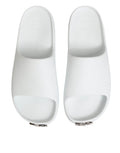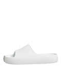 slides, crafted in crisp white and featuring the signature logo across the strap. Designed with a comfortable molded footbed, they are perfect for beachwear, poolside lounging, or casual warm-weather looks. A versatile staple for relaxed yet fashionable style.