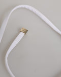 Gorgeous brand new, 100% Authentic Dolce & Gabbana two-piece swimsuit features a crisp white design accented with the signature Dolce & Gabbana logo. Complete with a matching top and bottom, it offers a sleek and modern look for stylish beach or poolside wear.