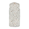 Dolce & Gabbana long coat in spotted white faux fox fur with snap button closure, quilted leopard print interior, and faux leather trim