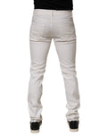jeans are crafted from premium white denim, featuring a mid-rise waist and a sleek skinny fit for a modern silhouette. Designed for both comfort and style, they offer versatile casual elegance, perfect for pairing with shirts, blazers, or relaxed everyday looks.