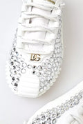 Gorgeous brand new with tags, 100% Authentic Dolce & Gabbana embellished low-top sneakers with shimmering rhinestones plenty reflected light off of the precious gems.