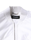 White Nylon Full Zip Cropped Bomber Jacket