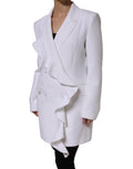 White Polyester Long Sleeves Ruffled Wrap Jacket