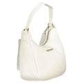 Elevate your accessory game with a touch of eco-chic elegance from Valentino Bags. This pristine white handbag adds a polished finish to any ensemble, while championing sustainability with its recycled polyethylene material. Expect convenience with a versatile adjustable and removable shoulder strap, coupled with organized storage offered by the two internal pockets and secure zip closure. The statement Valentino logo is the final touch, affirming your impeccable taste in fashion.
