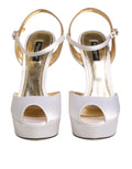 White Satin Platform Heels Sandals Shoes