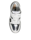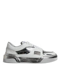 White Silver Leather Low Top Sneakers Shoes