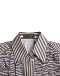 White Stripes Cotton Long Sleeves Ruffle Collar Top