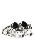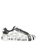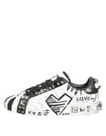 Gorgeous preowned, 100% Authentic Dolce & Gabbana low-top sneaker features a logo print all over and metal studded, white sole and logo details.