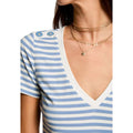 The Morgan De Toi 241-DINA women’s short-sleeve t-shirt features a timeless horizontal stripe pattern and a contrasting V-neckline for a touch of casual elegance. Crafted from a premium blend of 60% viscose, 32% polyester, 6% elastane/lycra, 1% metallic fiber, and 1% polyamide, this top ensures comfort, stretch, and a subtle sheen. The short sleeves and relaxed fit make it an ideal choice for spring and summer, perfect for everyday wear, leisure activities, or informal outings. Distinctive shoulder details add a unique and stylish finish, making this t-shirt a must-have for women seeking both practicality and refined style.