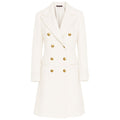 Elevate your outerwear collection with this pristine white double-breasted coat from Made in Italy. Crafted with sumptuous Loro Piana fabric, this virgin wool masterpiece exudes sophistication with sharp peak lapels and lustrous gold buttons. Its meticulous design includes two flap front pockets and a classic breast pocket, all brought together with a refined internal lining. Experience unparalleled Italian craftsmanship with this luxurious garment.