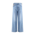 Jacob Cohen’s wide leg Jeans are a stylish, high-quality choice. Their wide leg fit offers a modern and comfortable look, perfect for those seeking a balance between style and comfort. Like classic jeans, they feature five pockets: two back pockets, two side pockets and a coin pocket. The front closure is with zip and button, while the belt loops on the waist allow you to add a belt to further customize the look. The medium waist makes the model versatile, adapting to different types of silhouettes. A unique detail of these jeans is the iconic perfume that characterizes each Jacob Cohen piece, a signature that adds a touch of exclusivity and sophistication to the design.