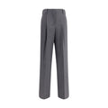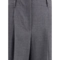 Virgin Wool Pants by P.A.R.O.S.H, wide-leg pattern, elasticized waistband, front button and zipper closure, two side slash pockets, two welt pockets on back, belt loops waistband.