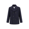 The Wool Pea Coat by Burberry is crafted in wool with a regular fit and tonal check lining. Its double-breasted design is enhanced by a wool-cotton undercollar woven with the iconic Burberry Check and buttons debossed with the Equestrian Knight Design. Front jet pockets, side flap pockets, a back vent, and button fastening complete the look. A timeless piece that blends British tailoring with enduring detail.