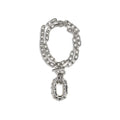 The XL Link Necklace by Paco Rabanne is a chain made of small intertwined metal links, enhanced by a large oversized front pendant link adorned with crystals. Featuring a front lobster clasp closure, this silver-colored necklace combines boldness and sparkle for a distinctive look.