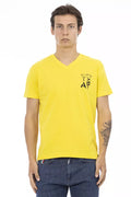 Yellow Cotton Men V-Neck T-Shirt