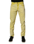 Yellow Cotton Stretch Skinny Men Denim Jeans