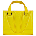 Ferrari, hand bag, 100% leather, yellow colour, magnetic closure with inside card pockets and iconic logo on the front.