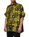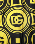 Gorgeous brand new, 100% Authentic Dolce & Gabbana t-shirt features a luxurious yellow silk fabric adorned with a silver DG logo and an intricate geometric print. This elegant short sleeve top offers a lightweight, silky feel and a refined look, perfect for making a bold and stylish statement.