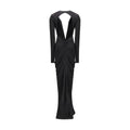 The Zelda Maxi Dress by The Andamane is a celebration of contemporary elegance and sensuality. Crafted from shiny jersey, it features a fluid silhouette with a plunging V-neckline at the front and an open back. Long sleeves frame the body, while draping at the bodice and ruching along the skirt create movement and femininity. A front slit cascades effortlessly to the floor, enhancing the dress’s bold yet refined allure.